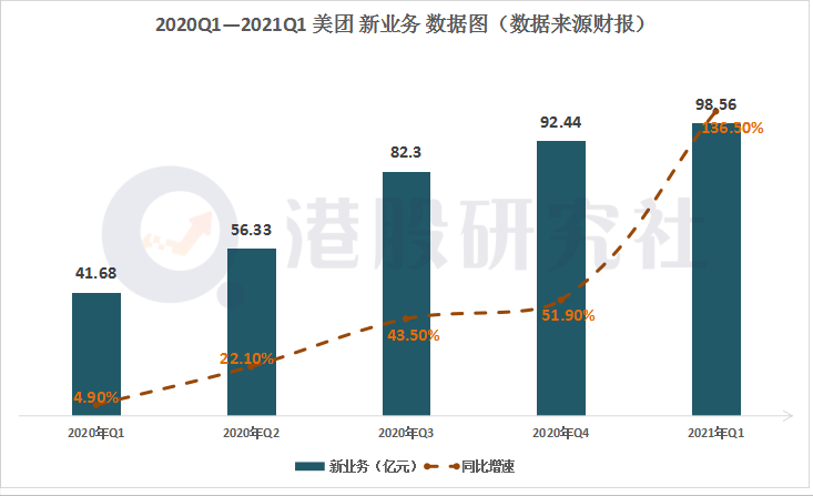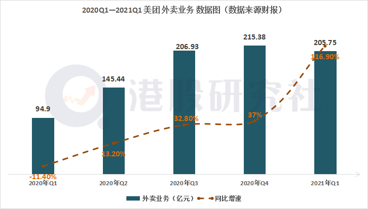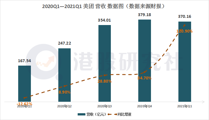 2021年一季度美团营收达到370.16亿元,同比增长120.9%。
